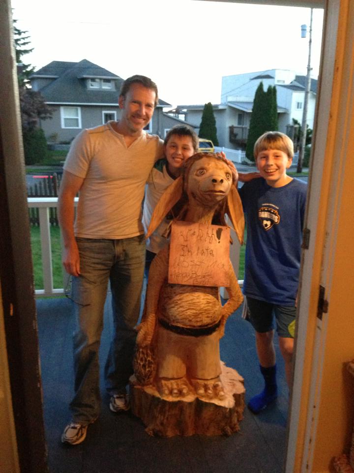 Bargle’s Story: When I received a copy of Garstige Gnome (The Goblin Problem) from Germany, I fell in love with Illustrator Max Meinzold’s depiction of one of the goofy goblins in the story. My family decided it had to be the character, Bargle. Years later, my wife met chainsaw carver Ryan Anderson, and commissioned him to do the carving above as a surprise birthday gift. Bargle is now one of the family!