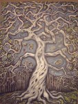 In The Dead Boys, a tree irradiated by nuclear waste feeds off of the life energy of boys. To keep living, it needs a new boy every ten years. I think that my friend, Jill, did a great job depicting the twisted nature of the tree and the boys that it traps inside of it.
