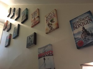My books include fantastic creatures and locations brought to life by wonderful artists and illustrators on my book covers…..and sometimes lead to bigger-than-life art for display at my home.