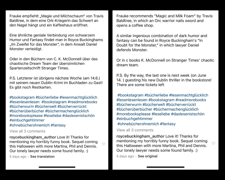The American bestselling author Royce Buckingham, on the other hand, approaches the monsters from the humorous side in his most recent novel ยปIn Doubt for the Monster (Monster Lawyer)ยซ. Experience the two writers in conversation with each other and learn everything about the many facets of literary horror.